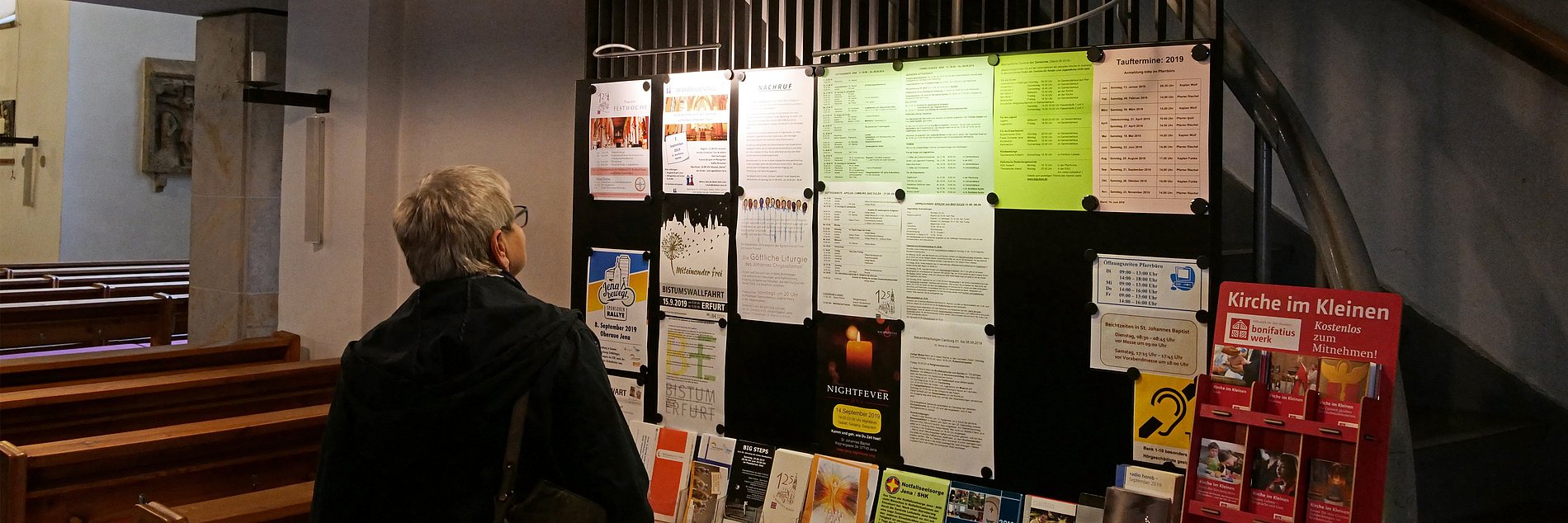 den Pfarrbrief, den Zelebrantenplan sowie andere Hinweise zu den Gottesdiensten